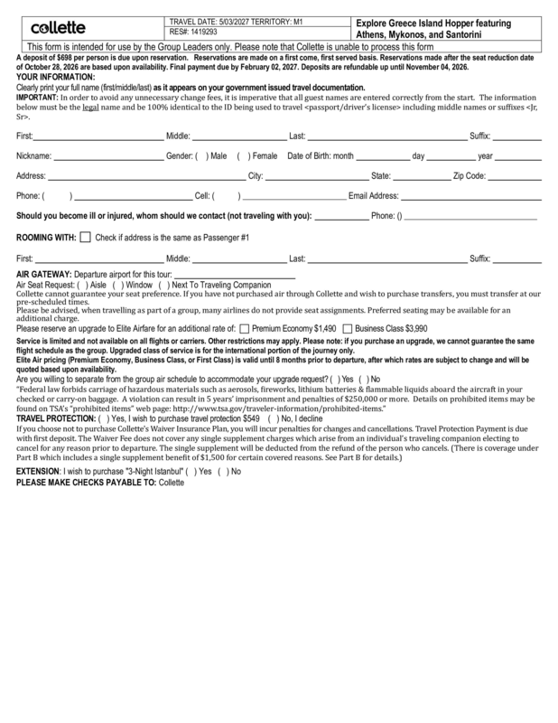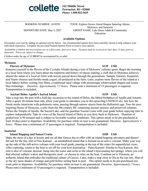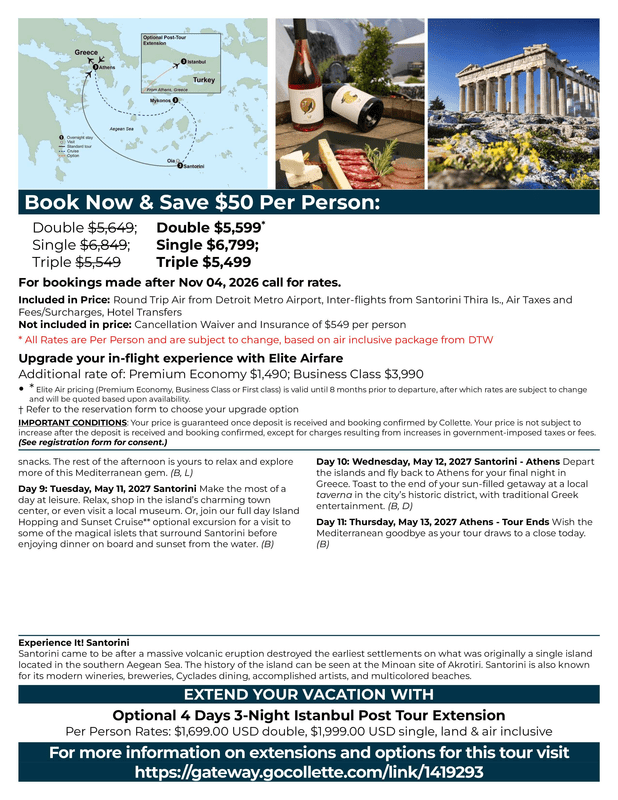 Please visit https://groups.gocollette.com/link/1419293 to book this trip online or call 855-436-5309 to book with personal assistance.