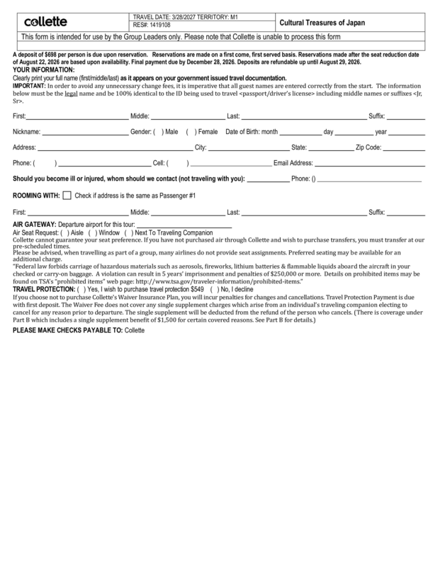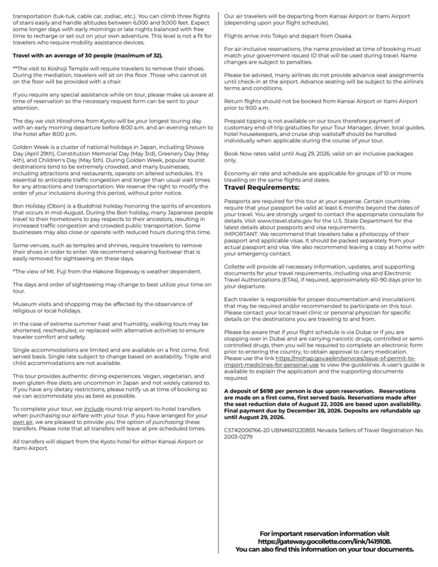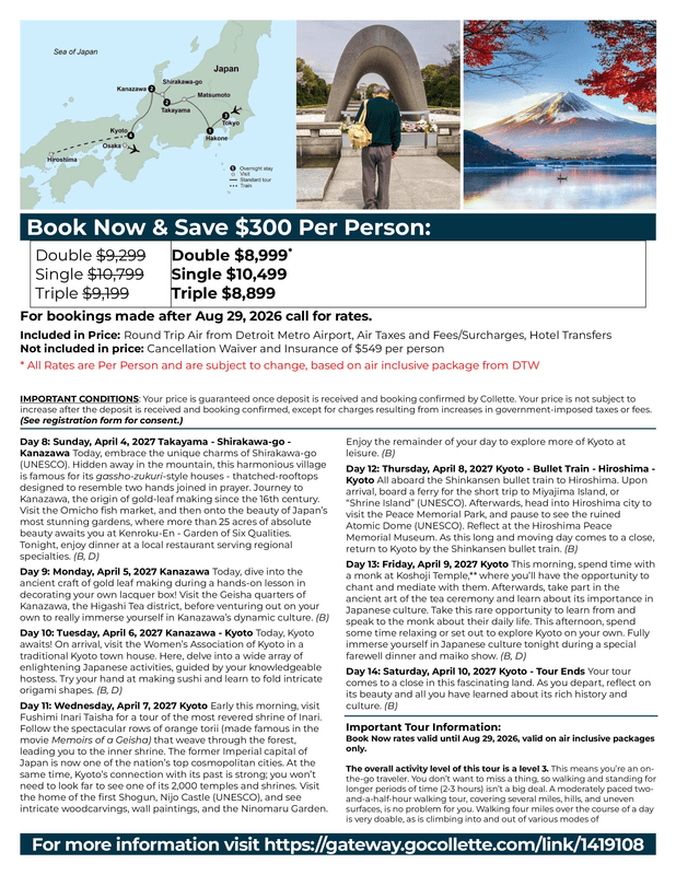 Please visit https://groups.gocollette.com/link/1419108 to book this trip online or call 855-436-5309 to book with personal assistance.