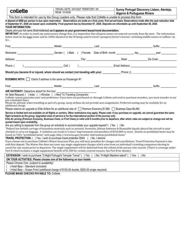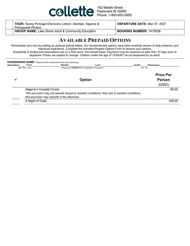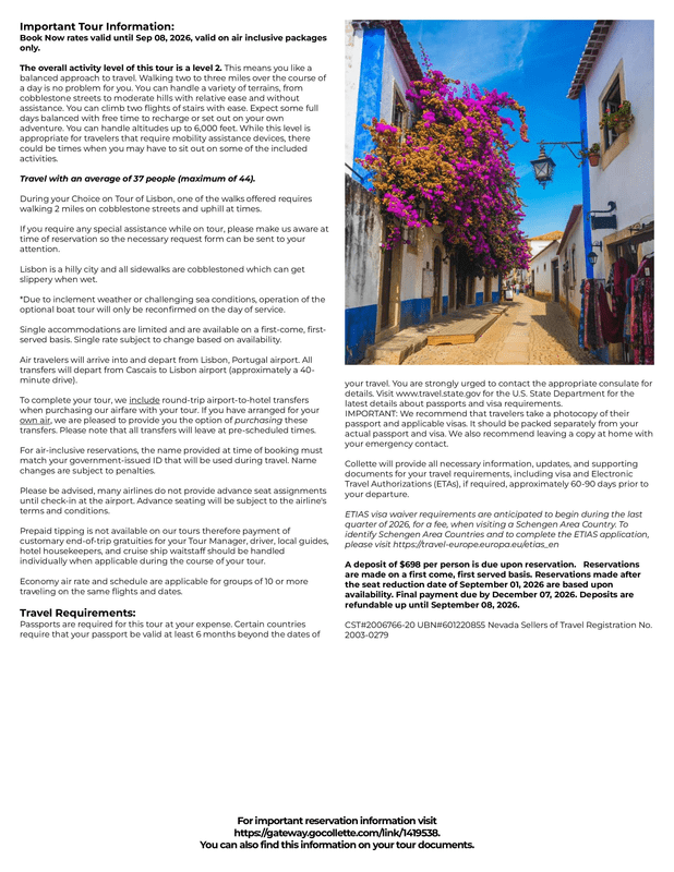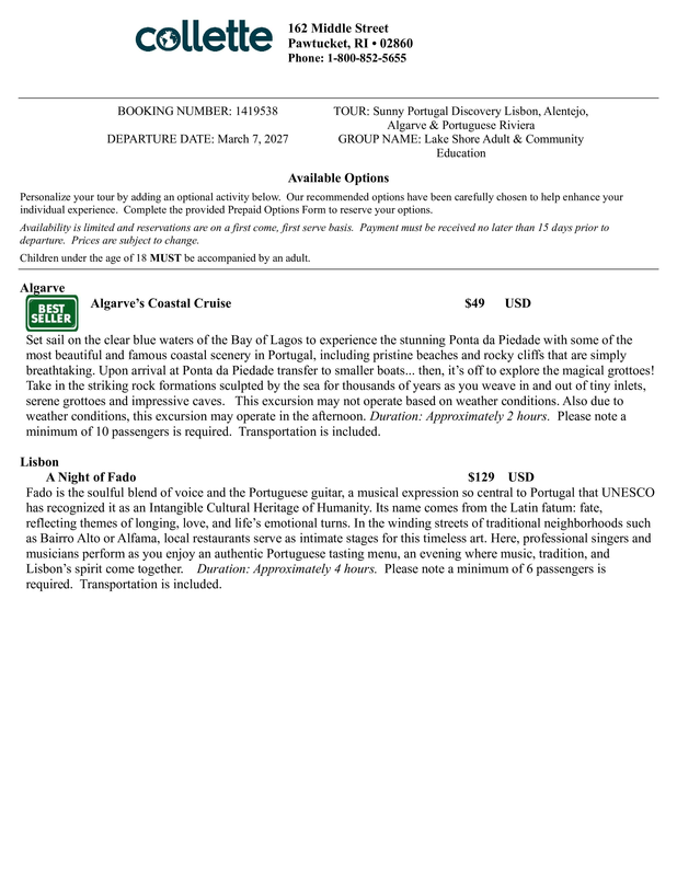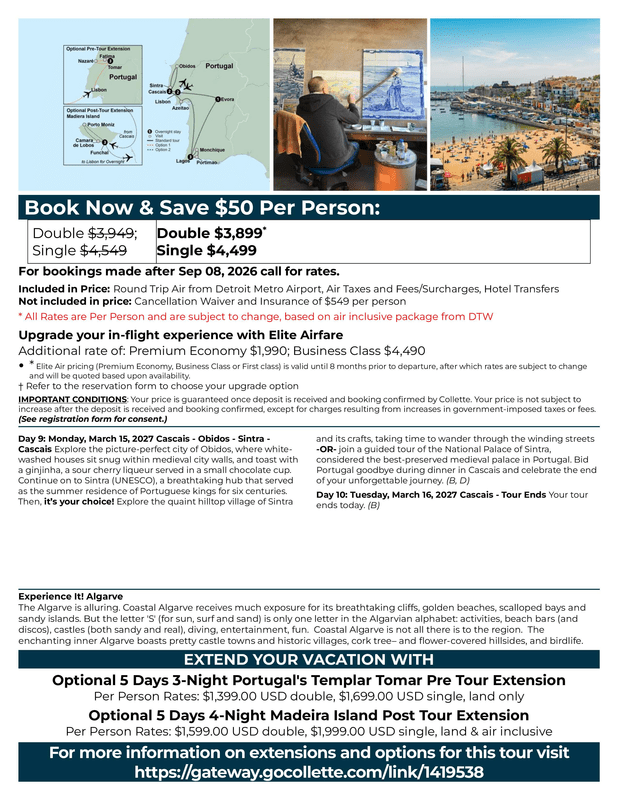 Please visit https://groups.gocollette.com/link/1419538 to book this trip online or call 855-436-5309 to book with personal assistance.